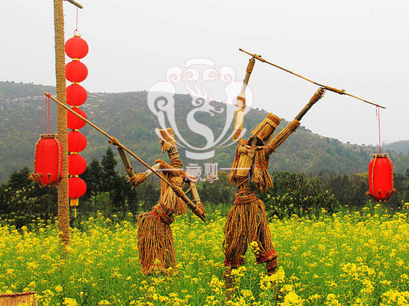 現(xiàn)在的精致稻草人藝術(shù)通常是由專業(yè)美術(shù)老師的造型放樣,然后由焊工師傅焊接出立體造型造型,然后以稻草或者稻草繩為材料編捆制作而成。