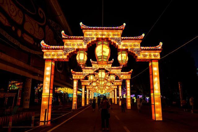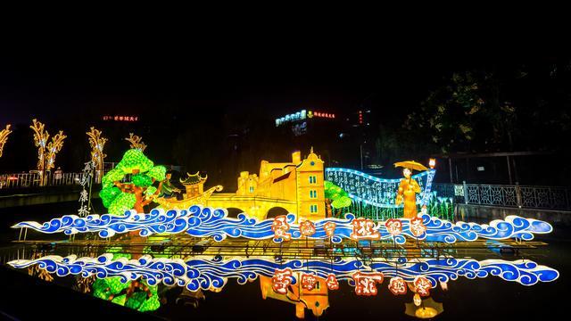 從海寧皮革城入口,進入峽石燈會核心展區,一組組彩燈融合著現代、古典、建筑、海寧文化等不同元素,光彩靈動,獨具匠心,讓人感受到極強的視覺震撼力。