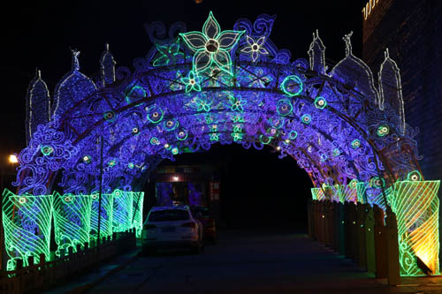 本次夢幻燈光秀以燈光科技文化為主線,分為愛國情愫、時光隧道、水中盛景、愛心通道、求婚LOVE五大板塊,設置了20多個燈組、50多個造型,通過LED霓虹燈飾與鋼架模型編成各種造型,以逼真的燈光造型、豐富的燈光種類、生動的場景再現、細致的燈光布置為特點,將燈光文化與前沿科技欣賞結合,讓市民在游玩中得到美感的體驗。