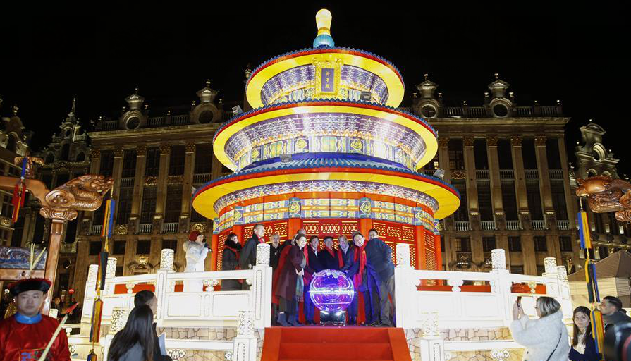 當地時間22日,魯塞爾大廣場花燈亮燈;嘉賓參加元宵燈展亮燈儀式。精湛的花燈制作工藝驚呆比利時人,璀璨奪目、中西合璧、別具一格的中國彩燈點亮魯塞爾的大廣場,拉開了中國元宵燈展的帷幕。