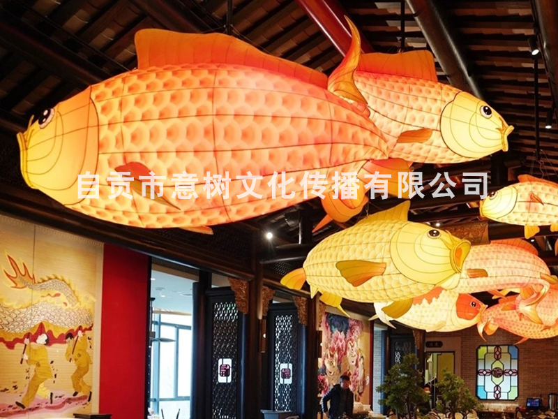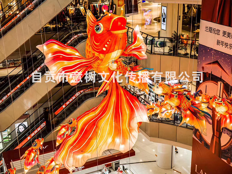 自貢市意樹文化傳播有限公司,采用獨(dú)特的絲藝造型,在形態(tài)上變化多變。經(jīng)過一個月工人的努力,為重慶某個大型商場制作的中庭魚燈終于安裝落地完成,深深的受到商場領(lǐng)導(dǎo)的稱贊,也得到了商場顧客的立足觀賞、點(diǎn)贊。